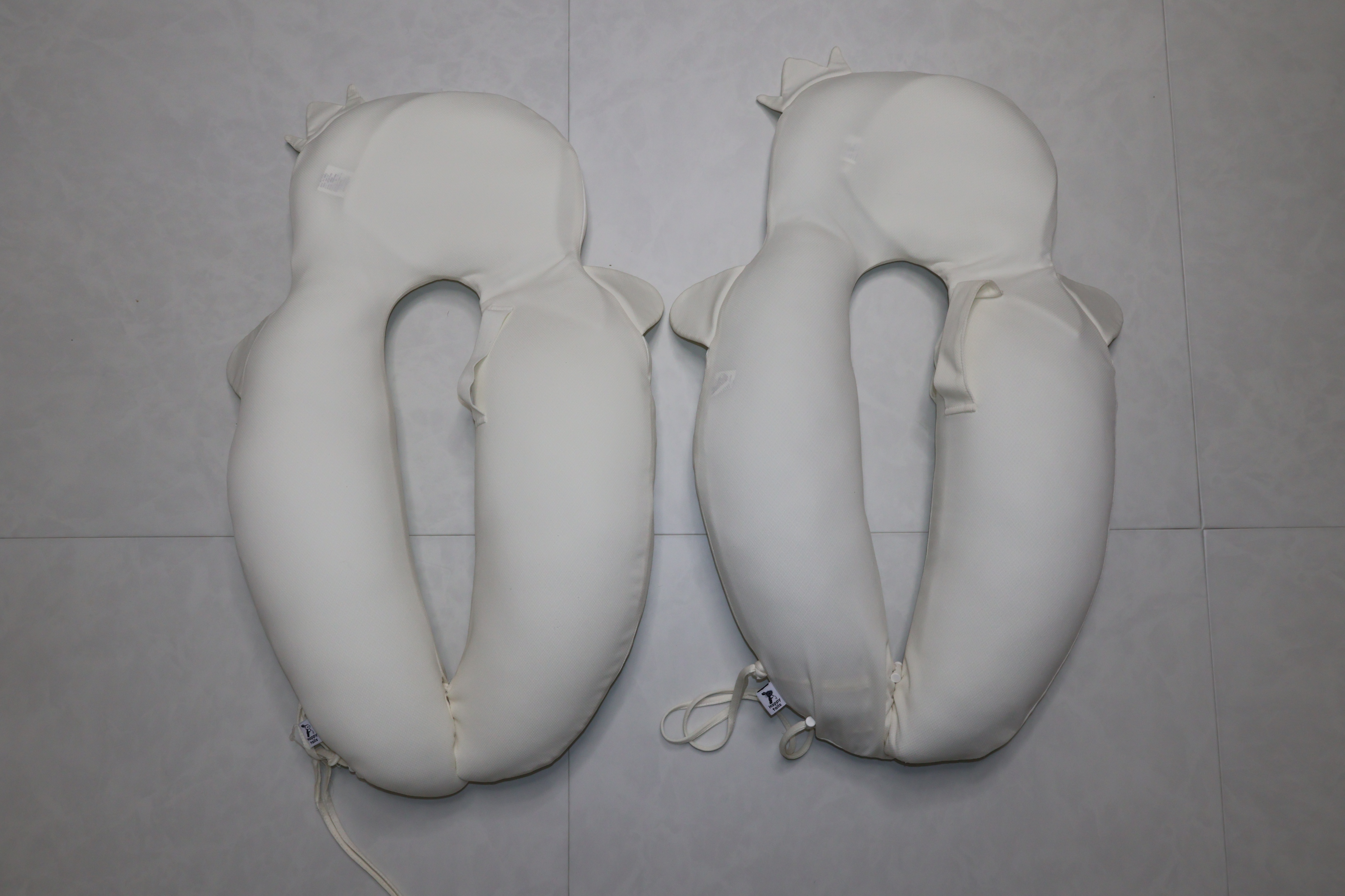 배게 앞 뒤로 팔을 걸어 두는 고리가 있다.