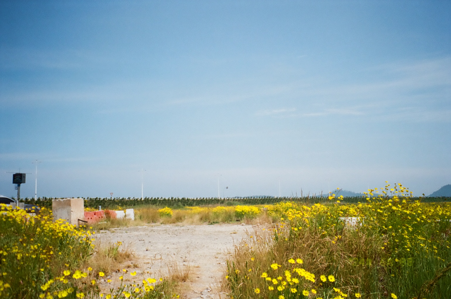 푸른 하늘 아래 노란 꽃밭이 정말 예뻤다.