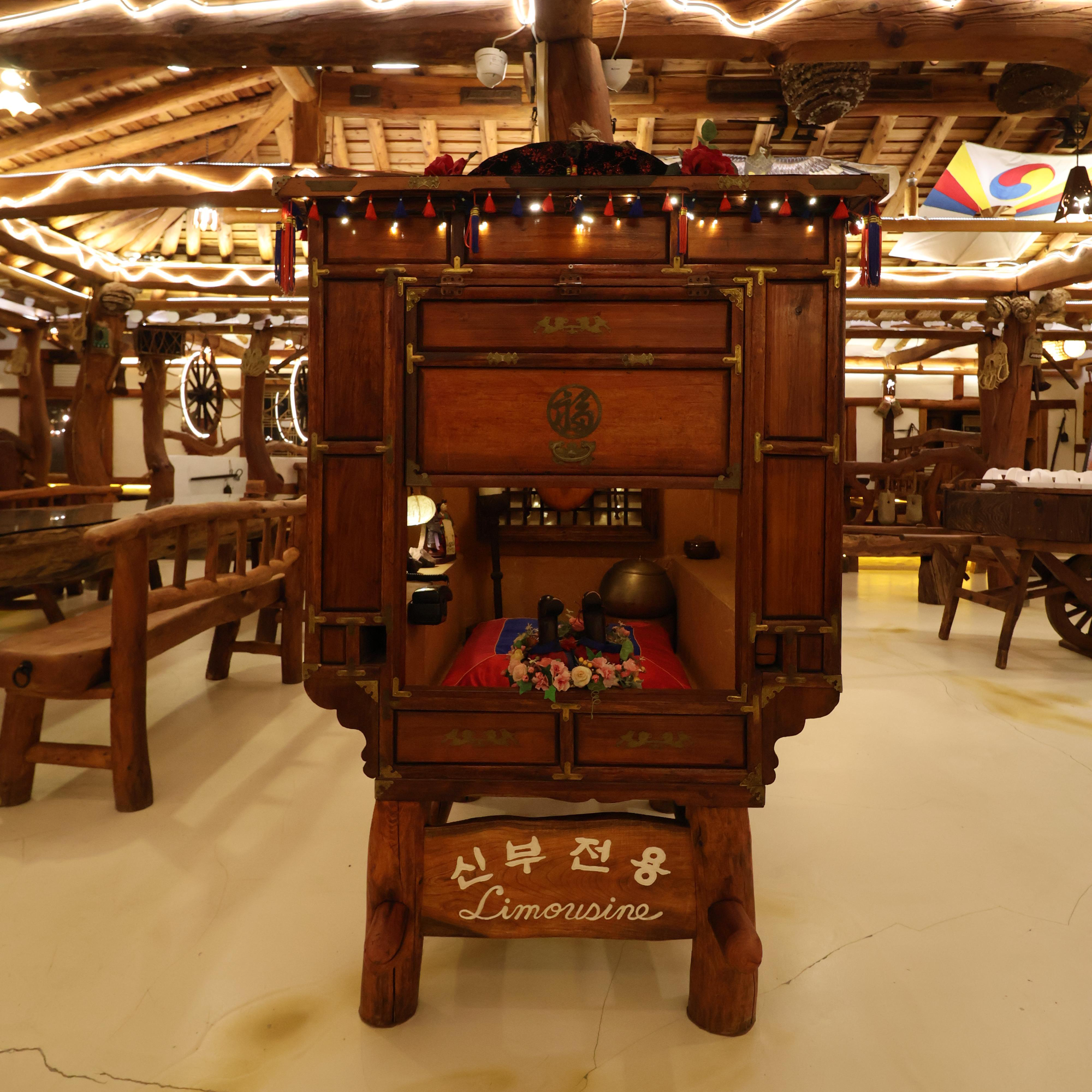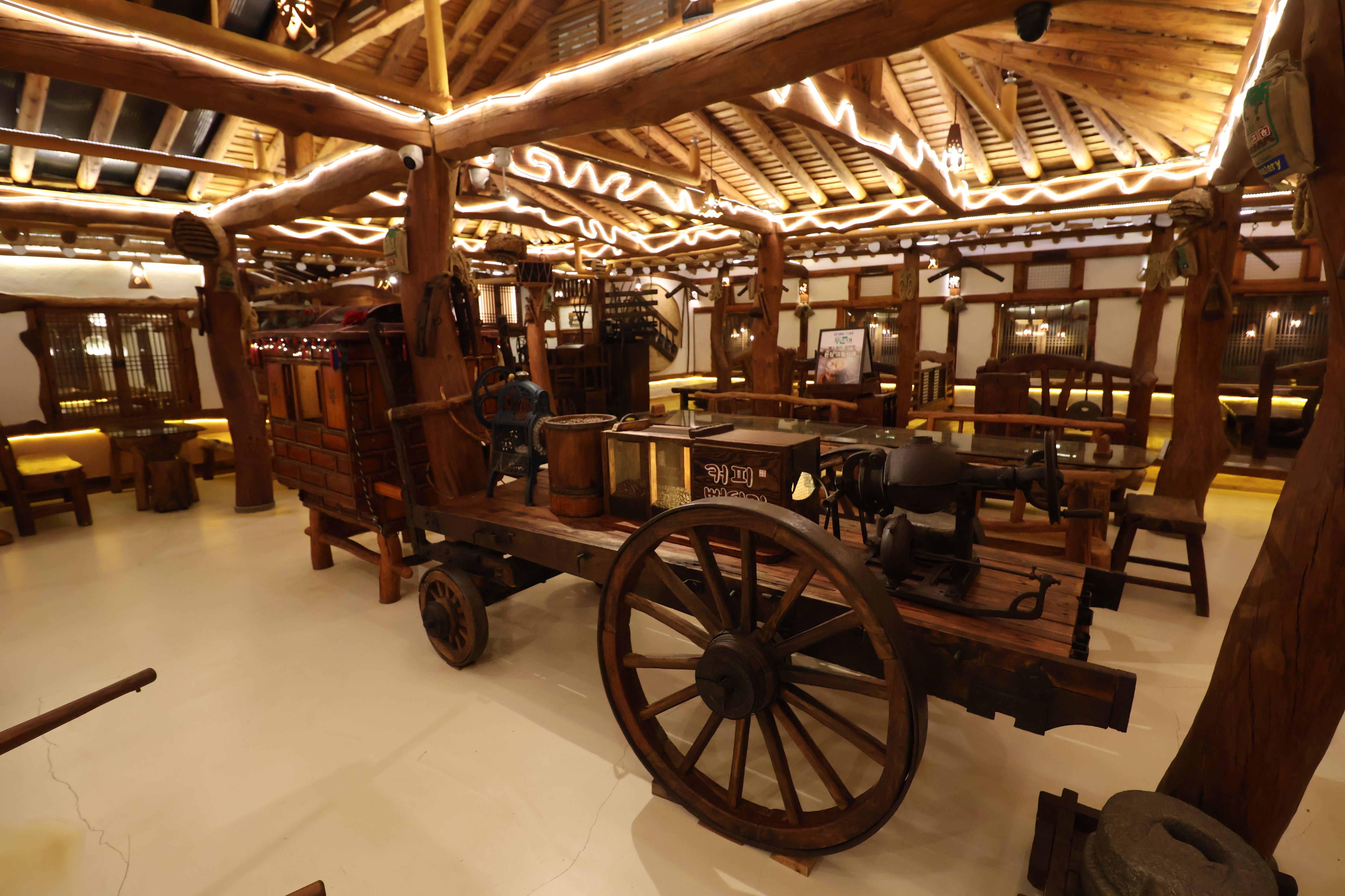 홀 가운데에는 수레와 마차가 있었다. 뻥튀기 기계도.