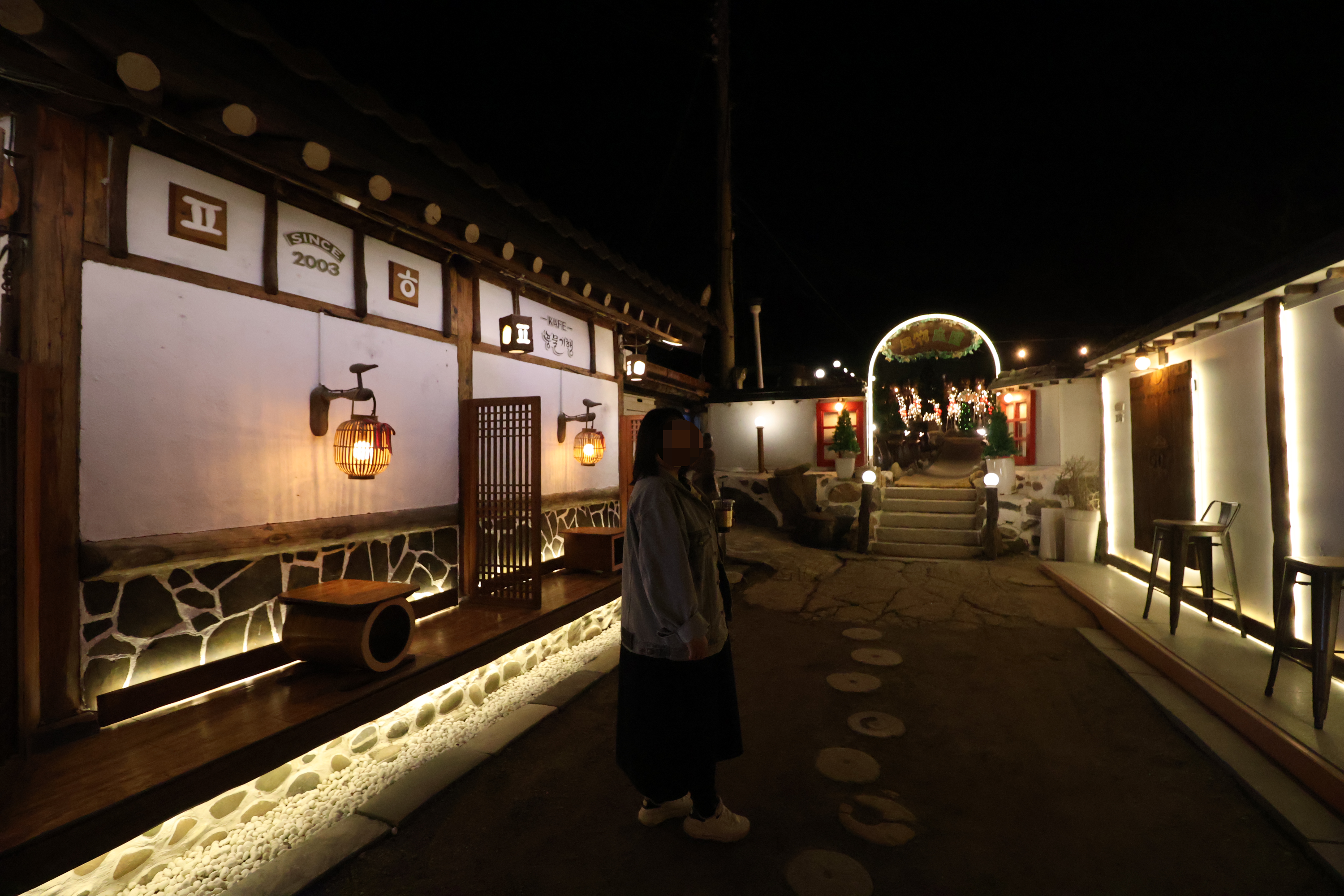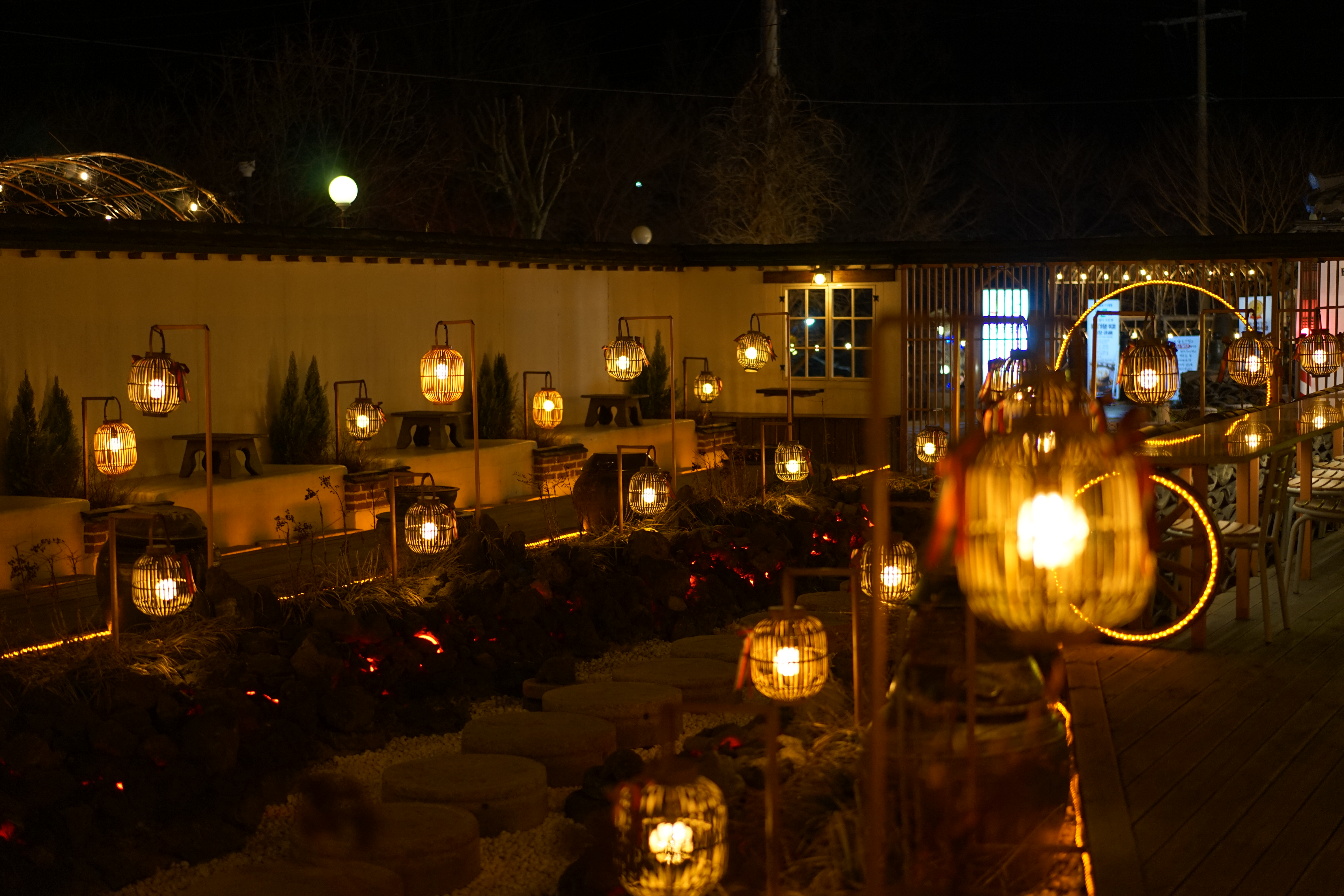 은은한 불빛이 밤에 나와서 마시고 싶게 했지만 아직은 쌀쌀했다.