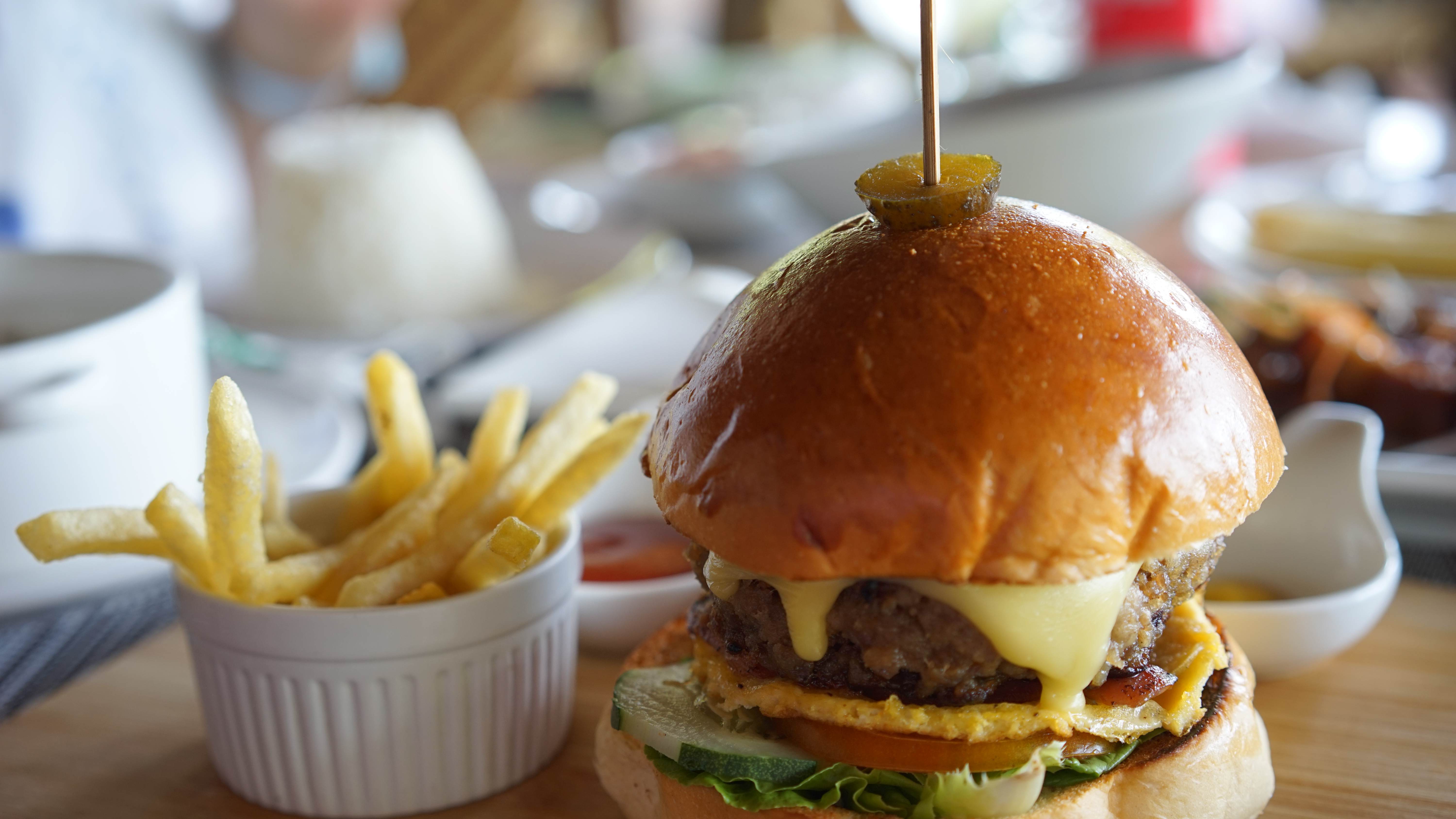 햄버거는 비주얼은 아주 그럴듯했지만 패티가 좀 짰다.