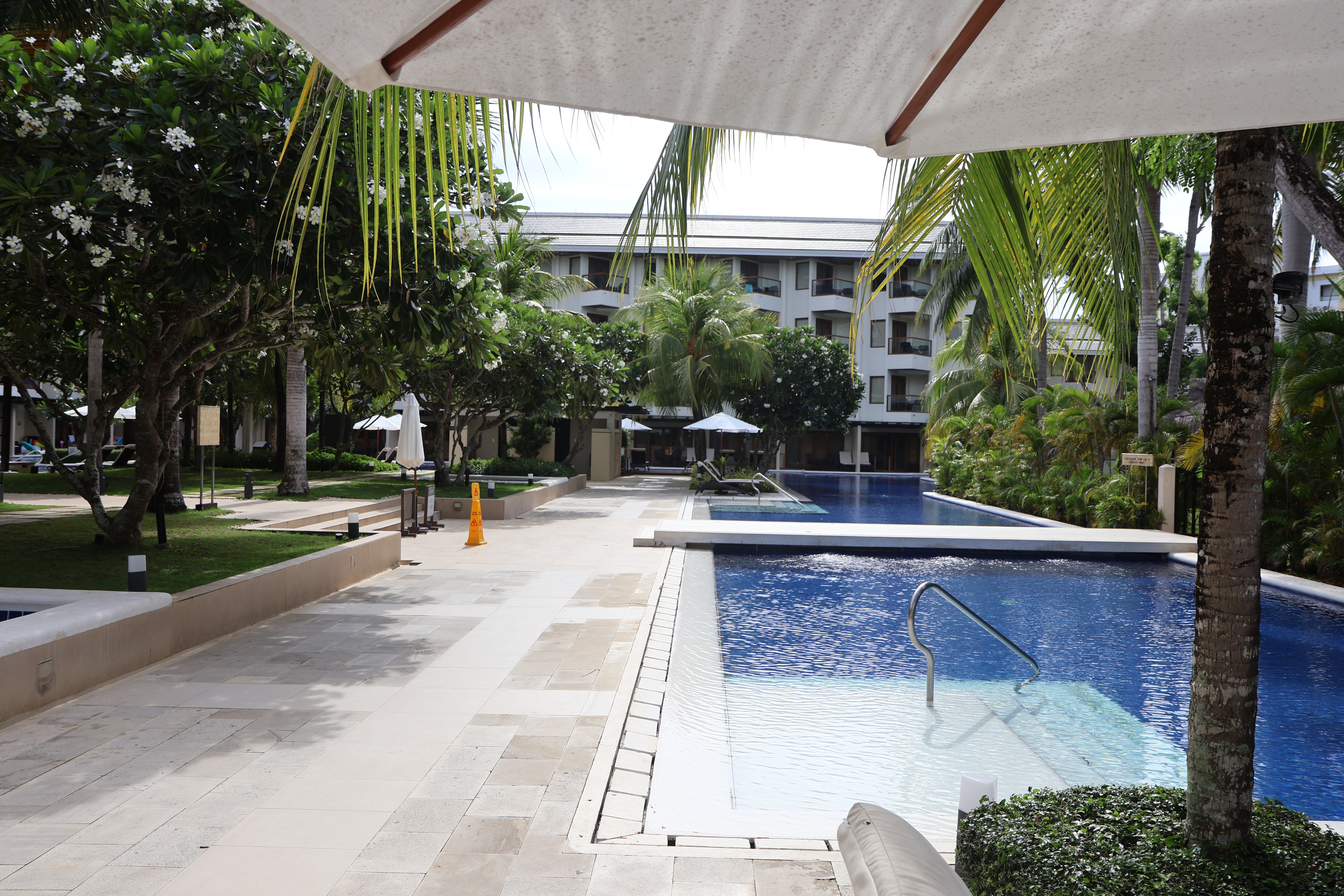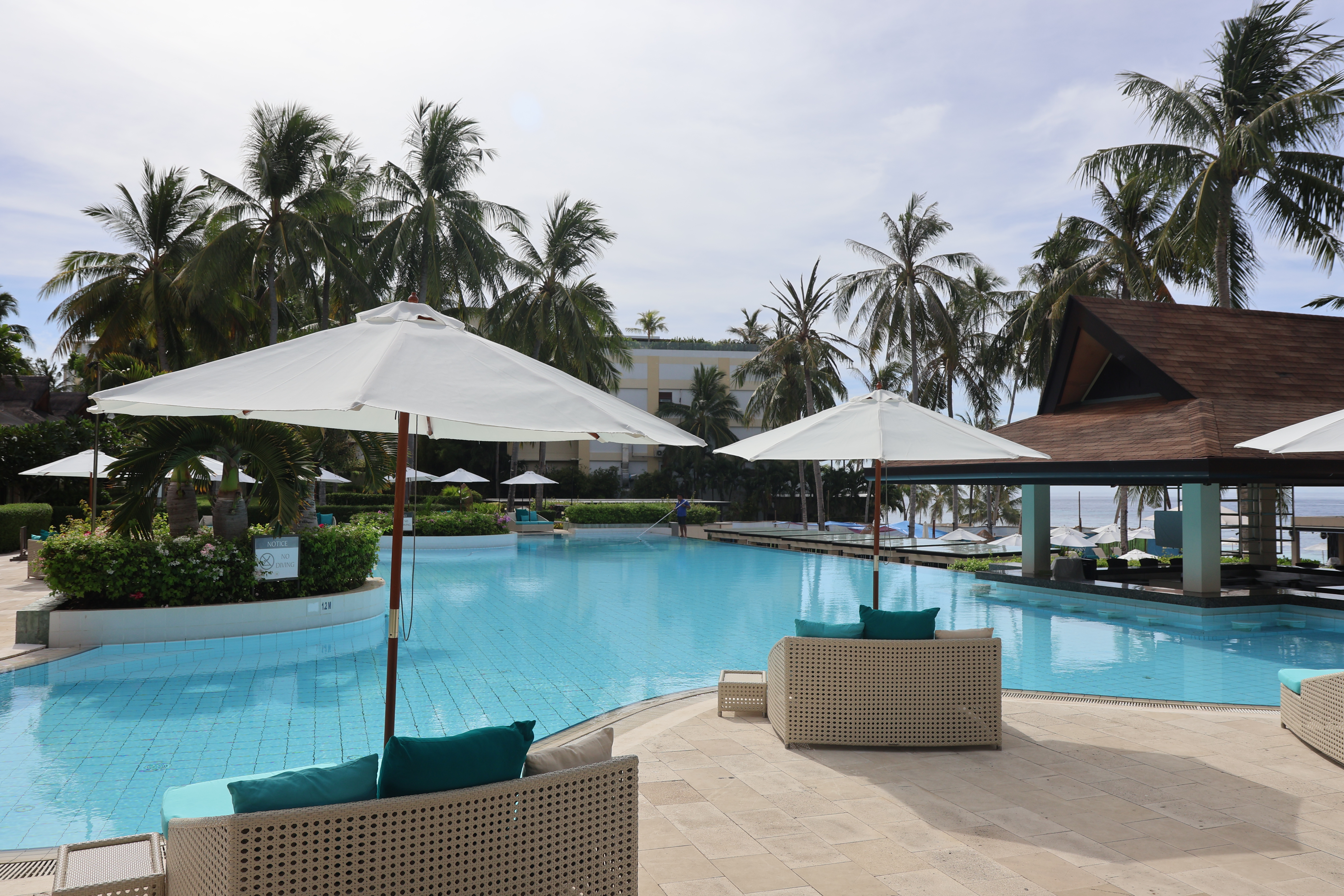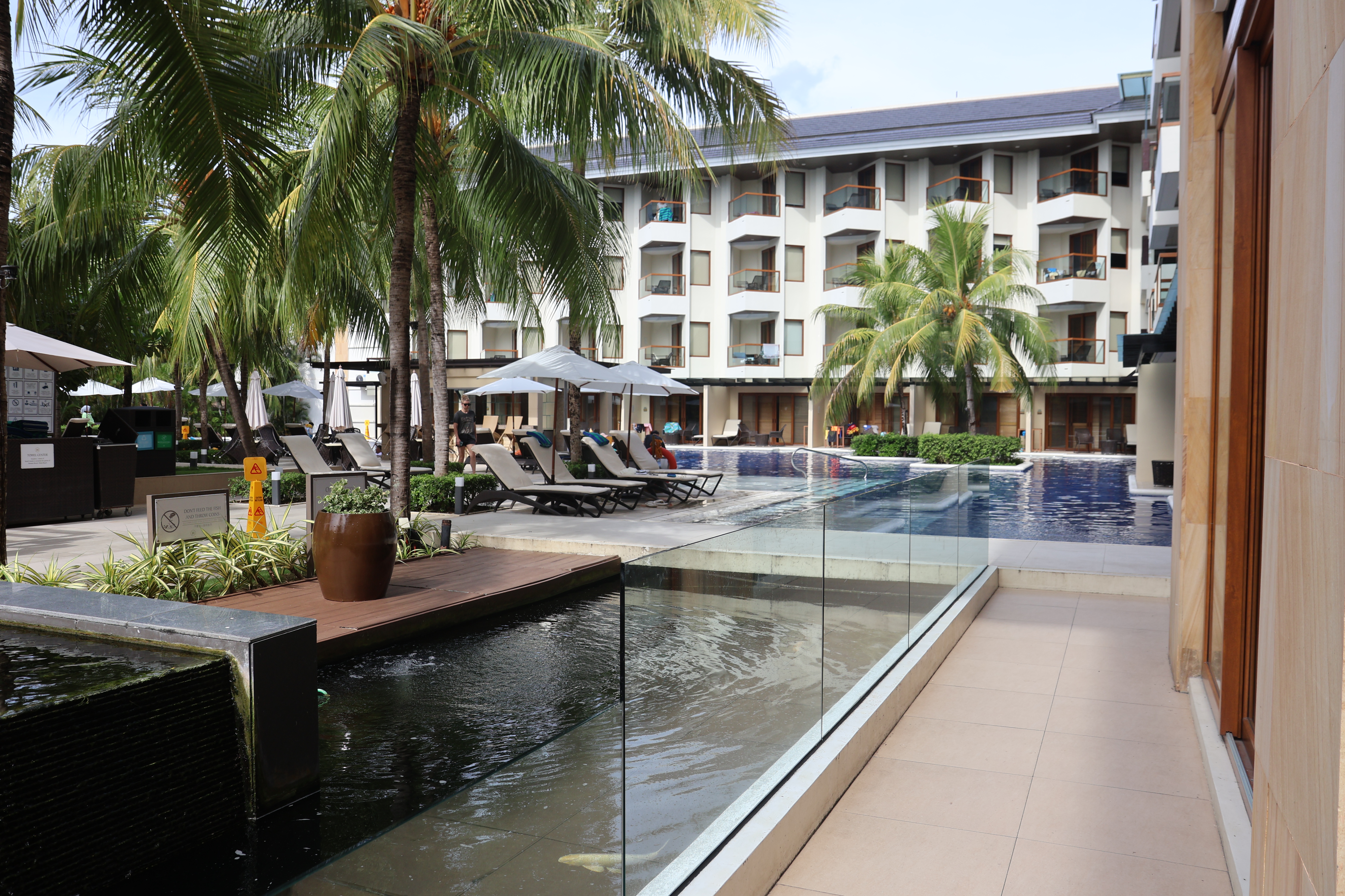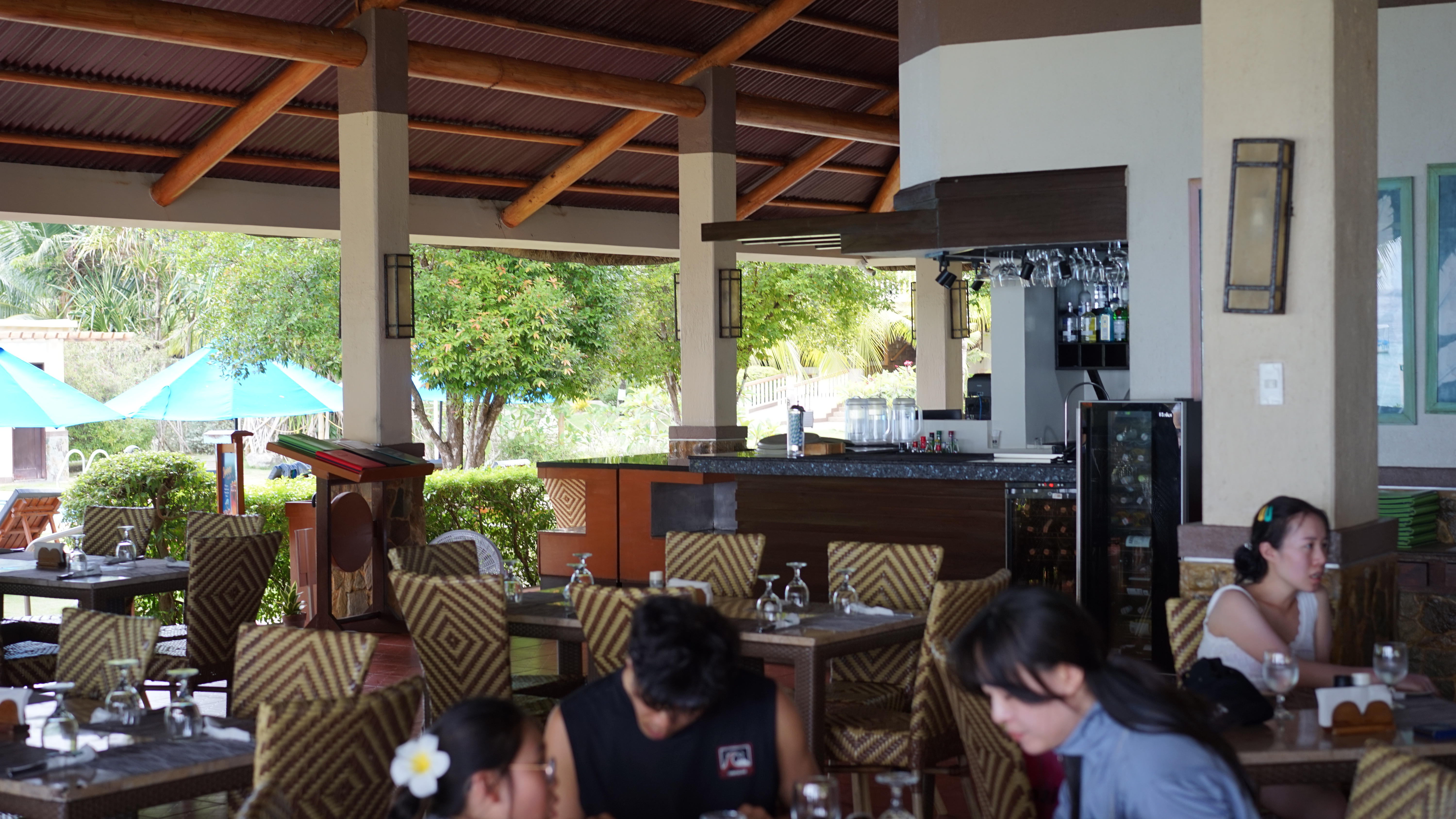 리조트 수영장을 바라보며 먹을 수 있는 테라스 공간도 있다.