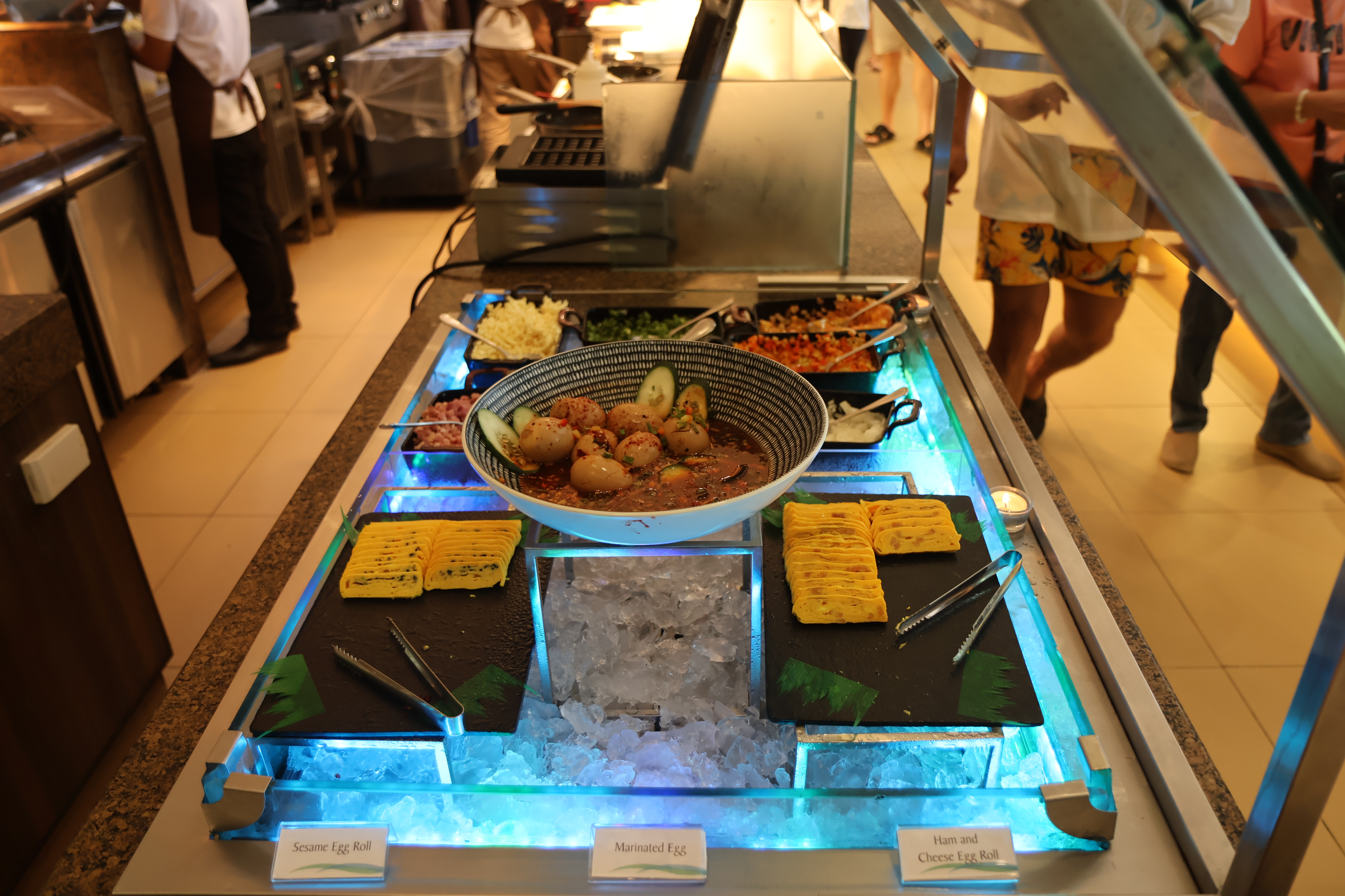 빵, 요거트, 쌀국수, 고기반찬, 김치전, 쌀밥과 마늘밥, 씨리얼, 치즈, 계란요리, 과일과 과일음료 등 화려했다.