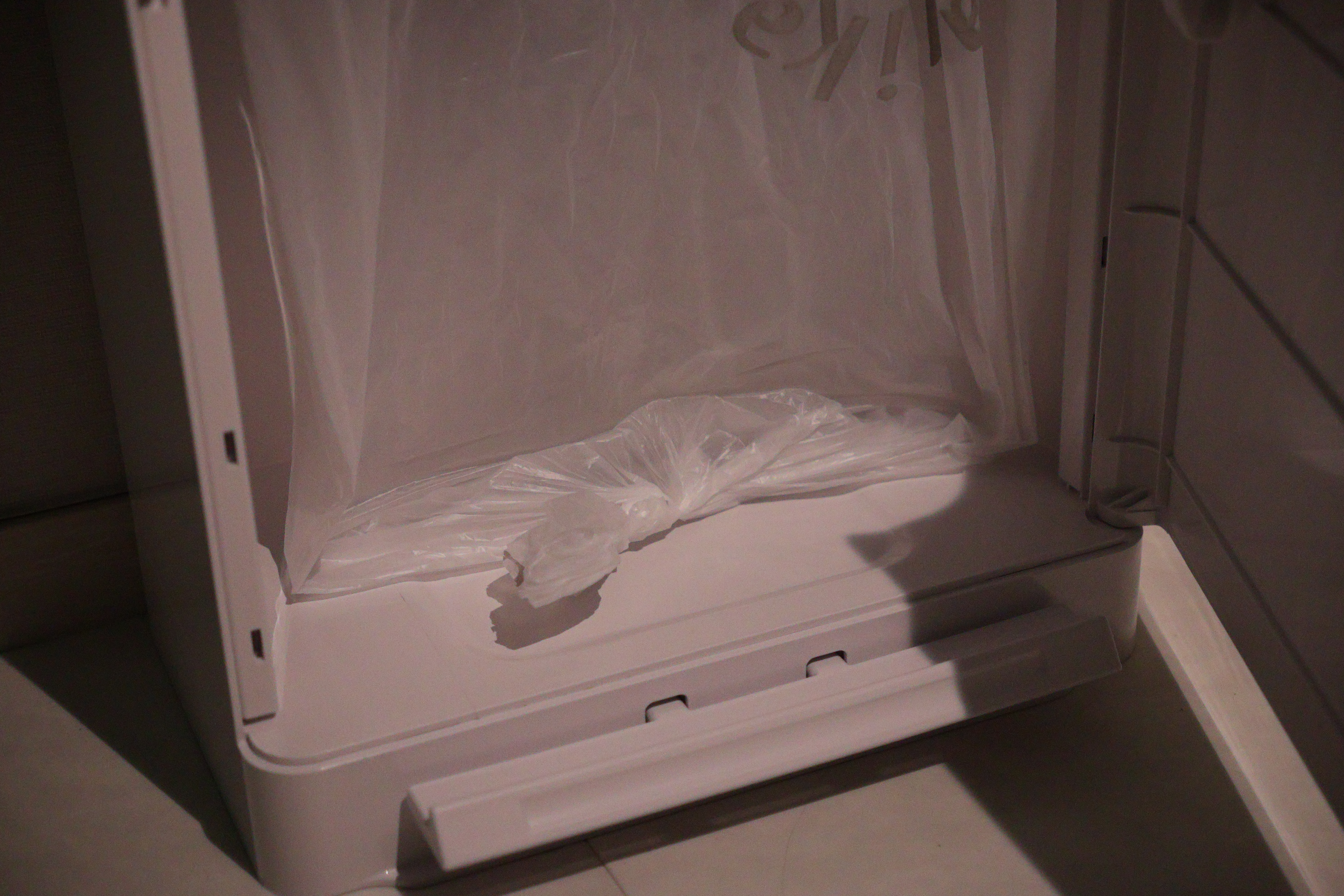 뚜껑은 2중으로 밀봉하는 구조이고, 심지어 비닐봉지를 교체할 때 냄새가 집에 퍼지지 않도록 할 수 있다.