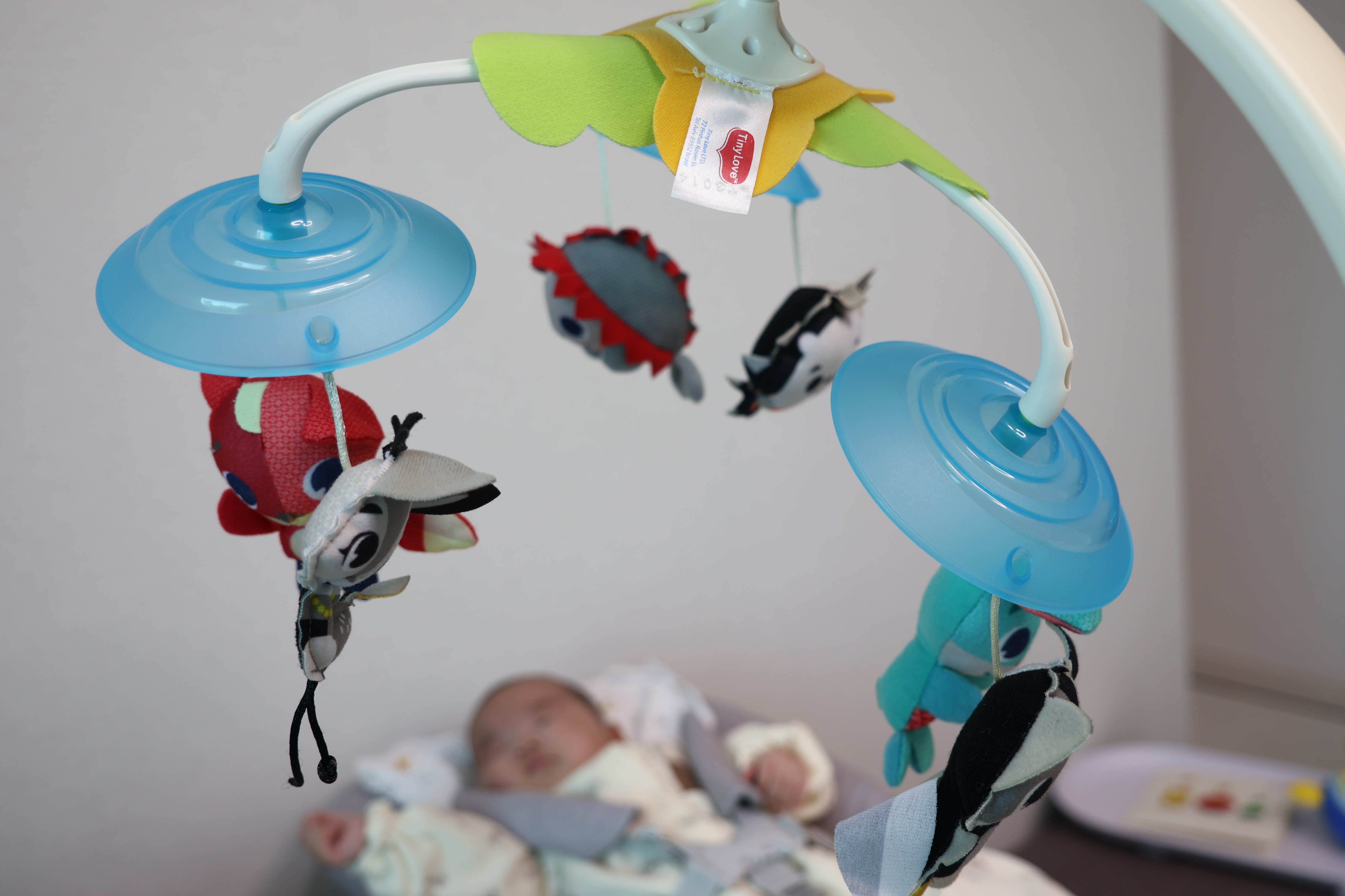 하지만 이런 모빌이 있으면 양육자가 시간을 벌 수 있다.