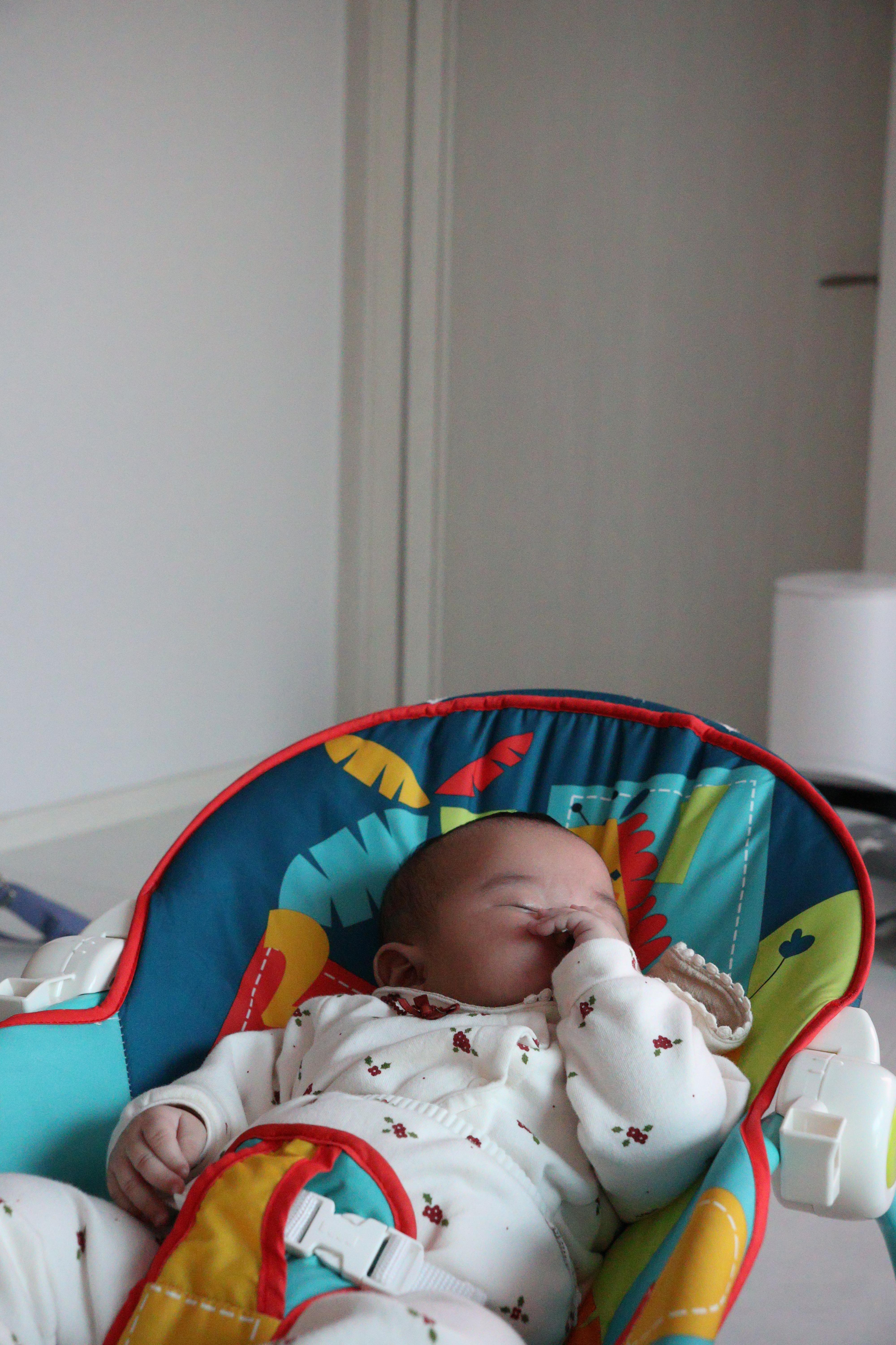 밥 먹을 시간이 되었음에도 꼼짝않고 바운서에서 자는 모습을 보면서